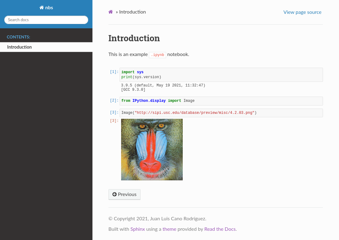 Jupyter notebooks are a popular tool to describe computational narratives that mix code, prose, images, interactive components, and more. Embedding them in your Sphinx project allows using these rich documents as documentation, which can provide a great experience for tutorials, examples, and other types of technical content. There are a few extensions that allow integrating Jupyter and Sphinx, and this document will explain how to achieve some of the most commonly requested features.
